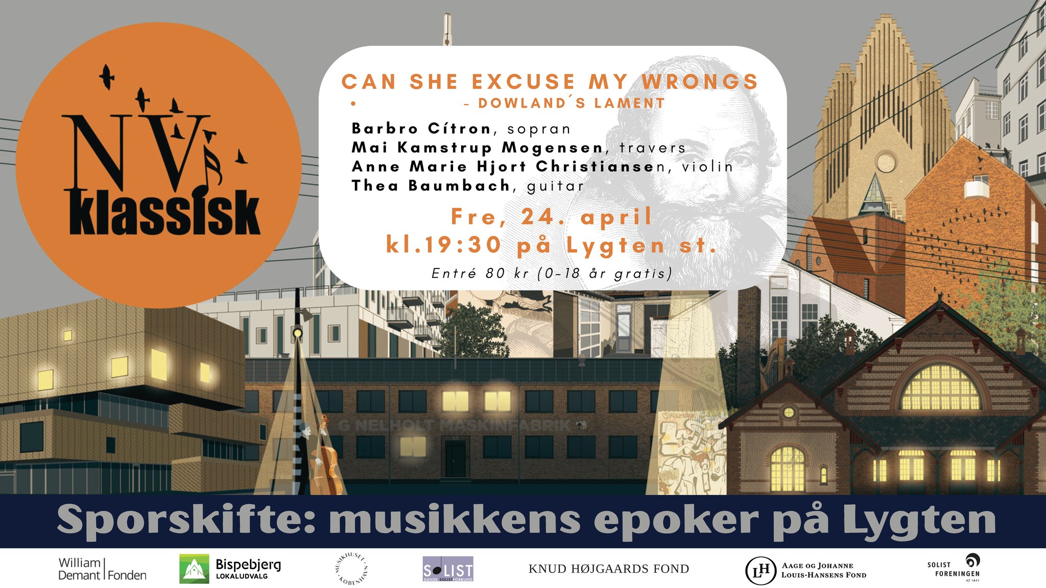 Oplev en aften med smuk renæssancemusik, når John Dowlands stemningsfulde sange fremføres sammen med et konsort bestående af sopran, traversfløjte, violin og guitar. Programmet tager os med på en musikalsk rejse gennem det 16. århundredes inderlige, melankolske og lyriske udtryk, hvor den kombinerede klang af disse instrumenter skaber en intim og harmonisk atmosfære.